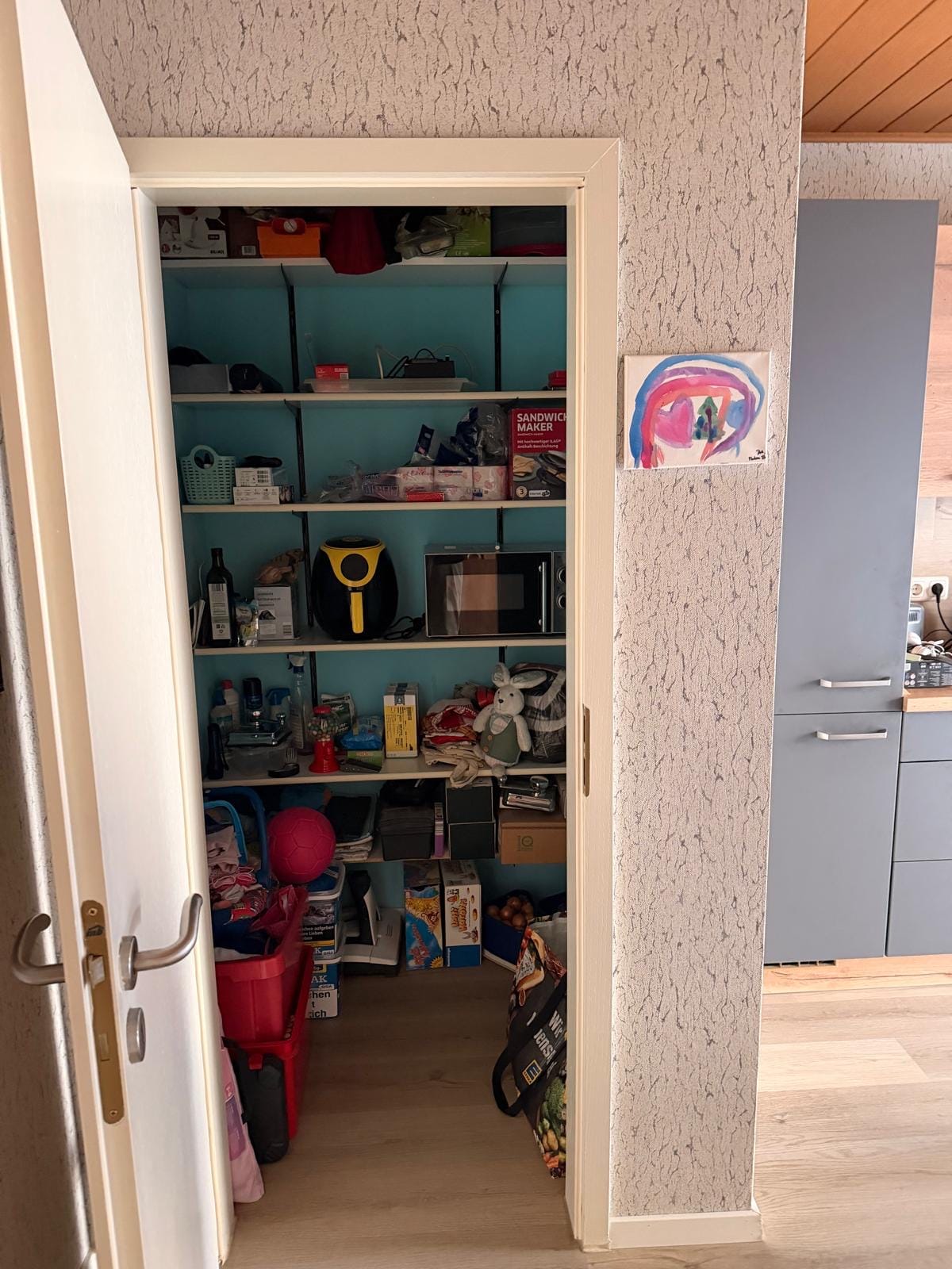 Die Innentüren, Treppenbeläge und Wandoberflächen sind in einem soliden Zustand und vermitteln einen stimmigen Gesamteindruck. Die Küche ist mit einer modernen Einbauküche inklusive Elektrogeräten, ausreichend Arbeitsfläche und Stauraum ausgestattet und bietet Platz für einen integrierten Essbereich.